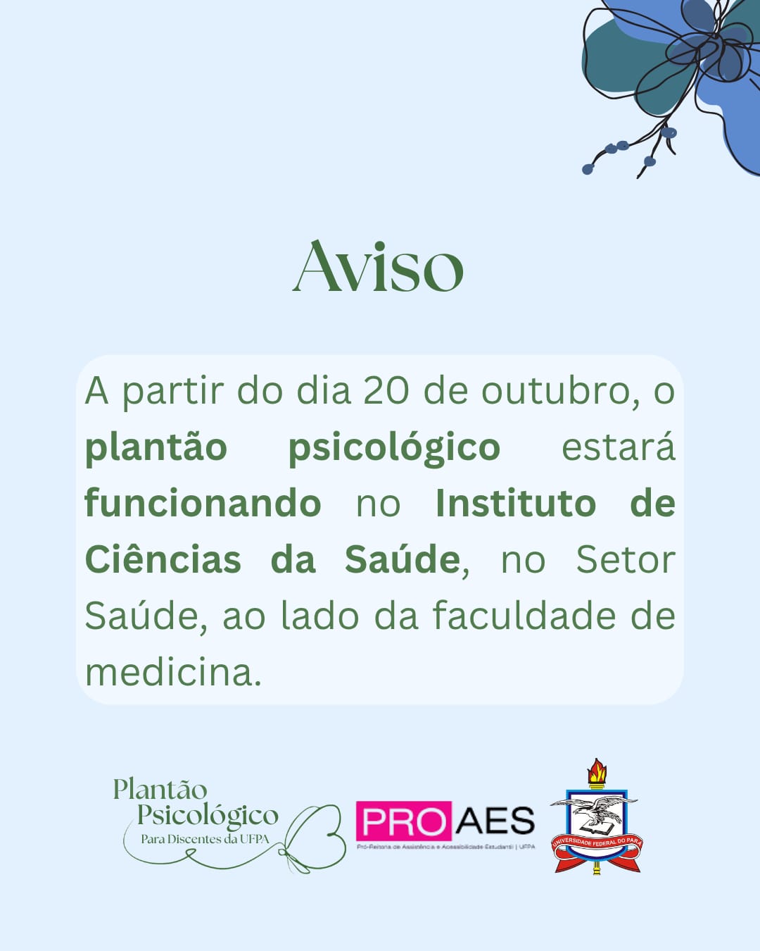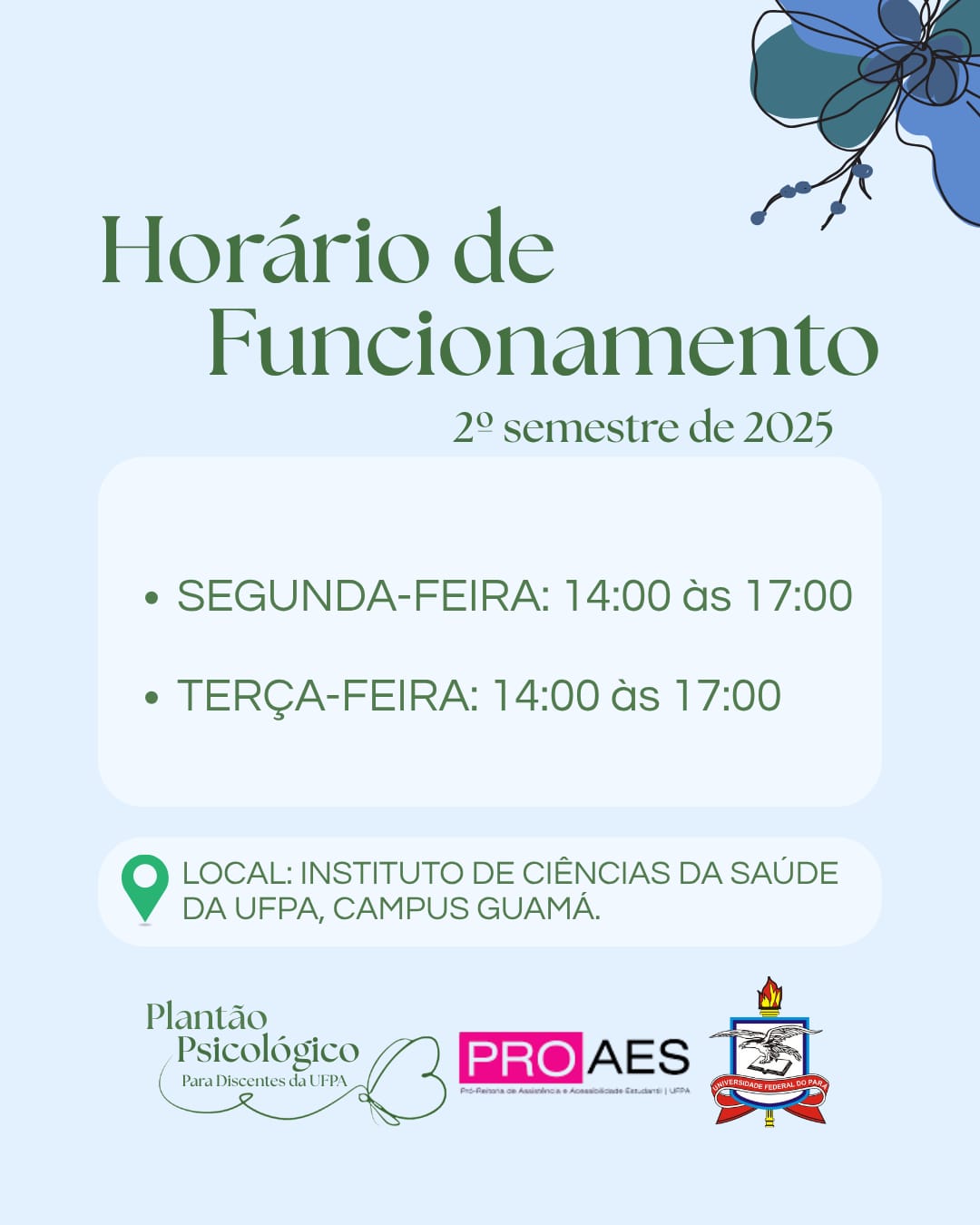 OBS: No Plantão Psicológico, o atendimento será realizado por ordem de chegada. Não há agendamento.